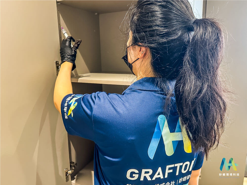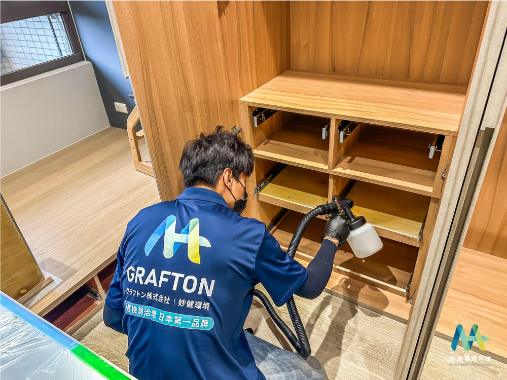 妙健獨家代理的GRAFTON 除甲醛技術來自日本,擁有國際多項安全認證,無色無味且親膚無毒。這套技術可長效分解甲醛,並維持除醛效能,特別適合家中有幼兒或過敏體質者。